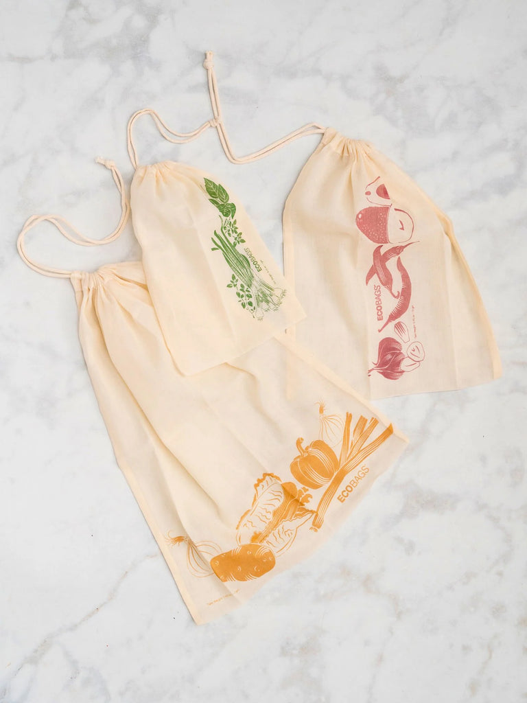 Put some eco-friendly pizazz in your shopping experience with the ECOBAGS 100% Organic Cotton Printed Reusable Produce Bags!